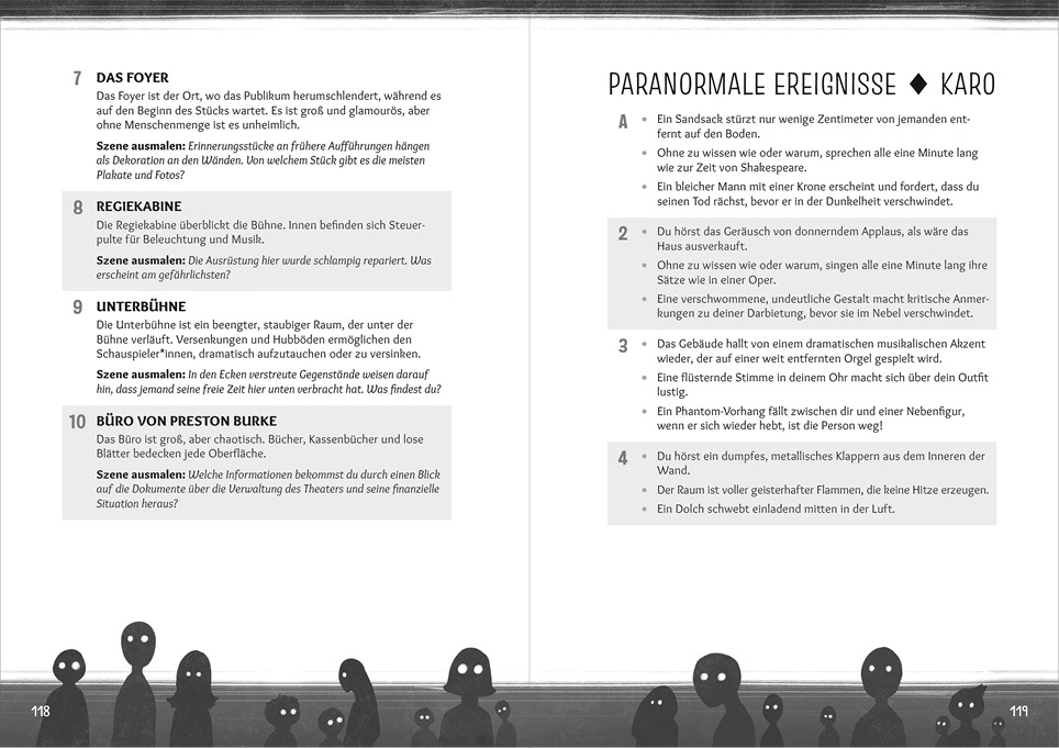 Spielrunde mit Shay (als Geist), Jakob (als Wissenschaftler), Friederike (als Bücherwurm) und Andrea (als Praktikantin). Wir spielen das Mysterium „Das Phantom des Phantoms der Oper“ von Lara Paige Turner und klären paranormale Probleme in einem Theater auf – neben, hinter und unter der Bühne! Dabei begegnen wir nicht nur einem Geist, sondern gleich mehreren: