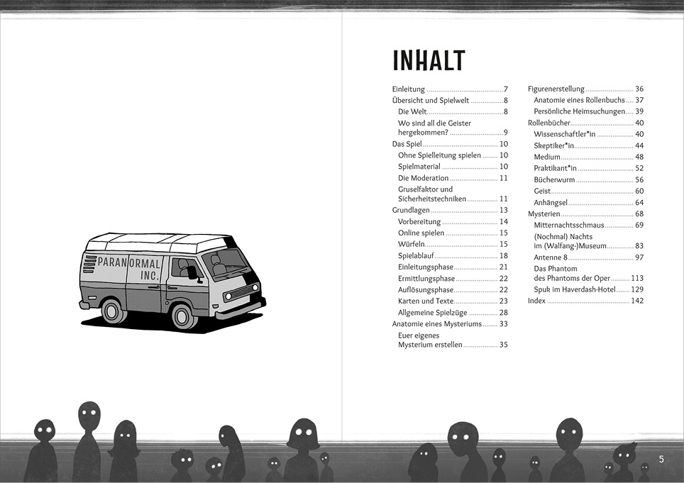 Paranormal Inc. entwickelt das aus Brindlewood Bay bekannte Regelsystem mit Spielzügen, Würfeln und frei kombinierbaren Hinweisen zu einer spielleitungslosen Version weiter (Powered by the Apocalypse / Carved from Brindlewood). Ihr spielt jeweils eine Hauptfigur und seid zusätzlich reihum auch für die Beschreibung der zufällig gezogenen Schauplätze, Hinweise und paranormalen Ereignisse und für das Spielen der Nebenfiguren zuständig.